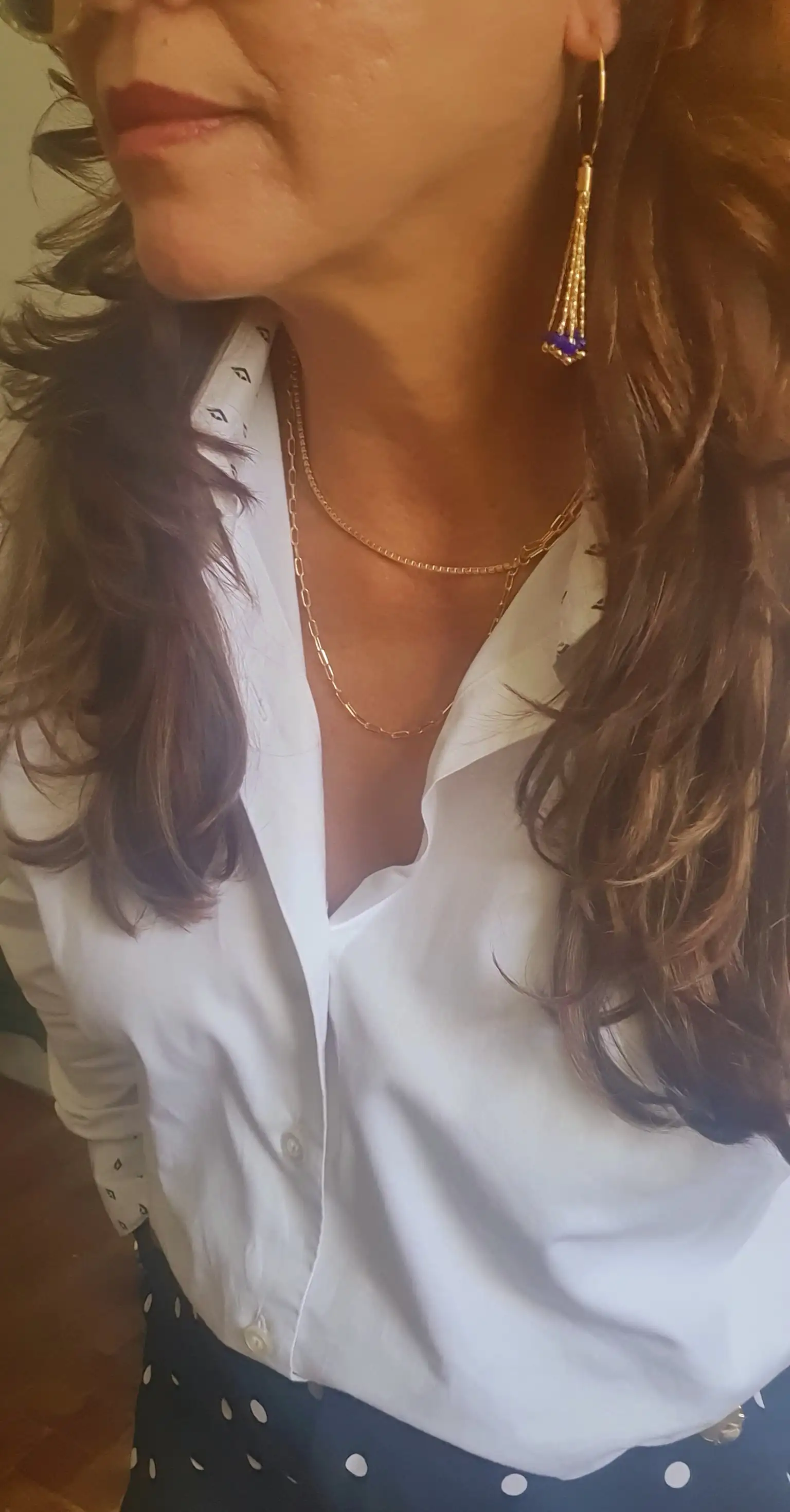Brinco folheado a ouro argola com franja cristal azul marinho