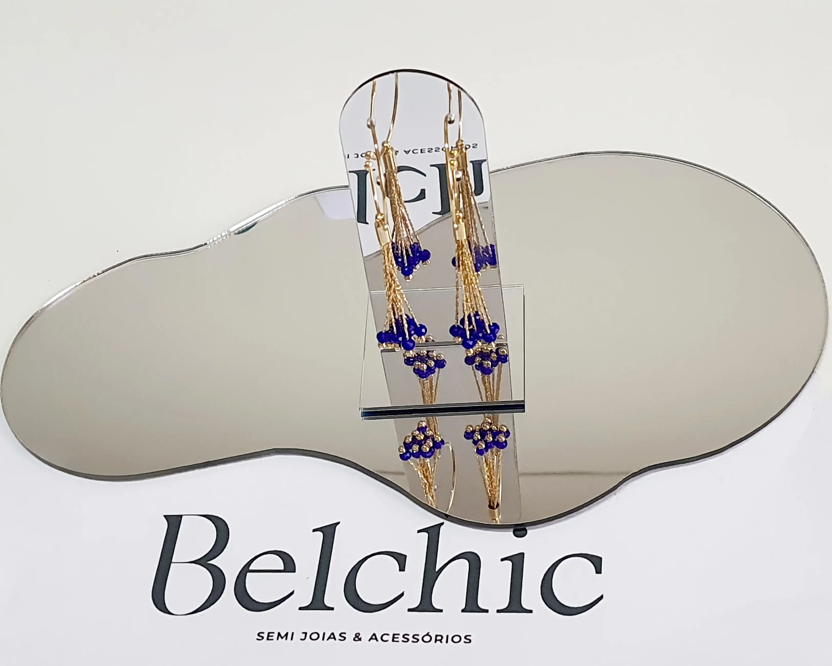 Brinco folheado a ouro argola com franja cristal azul azul marinho