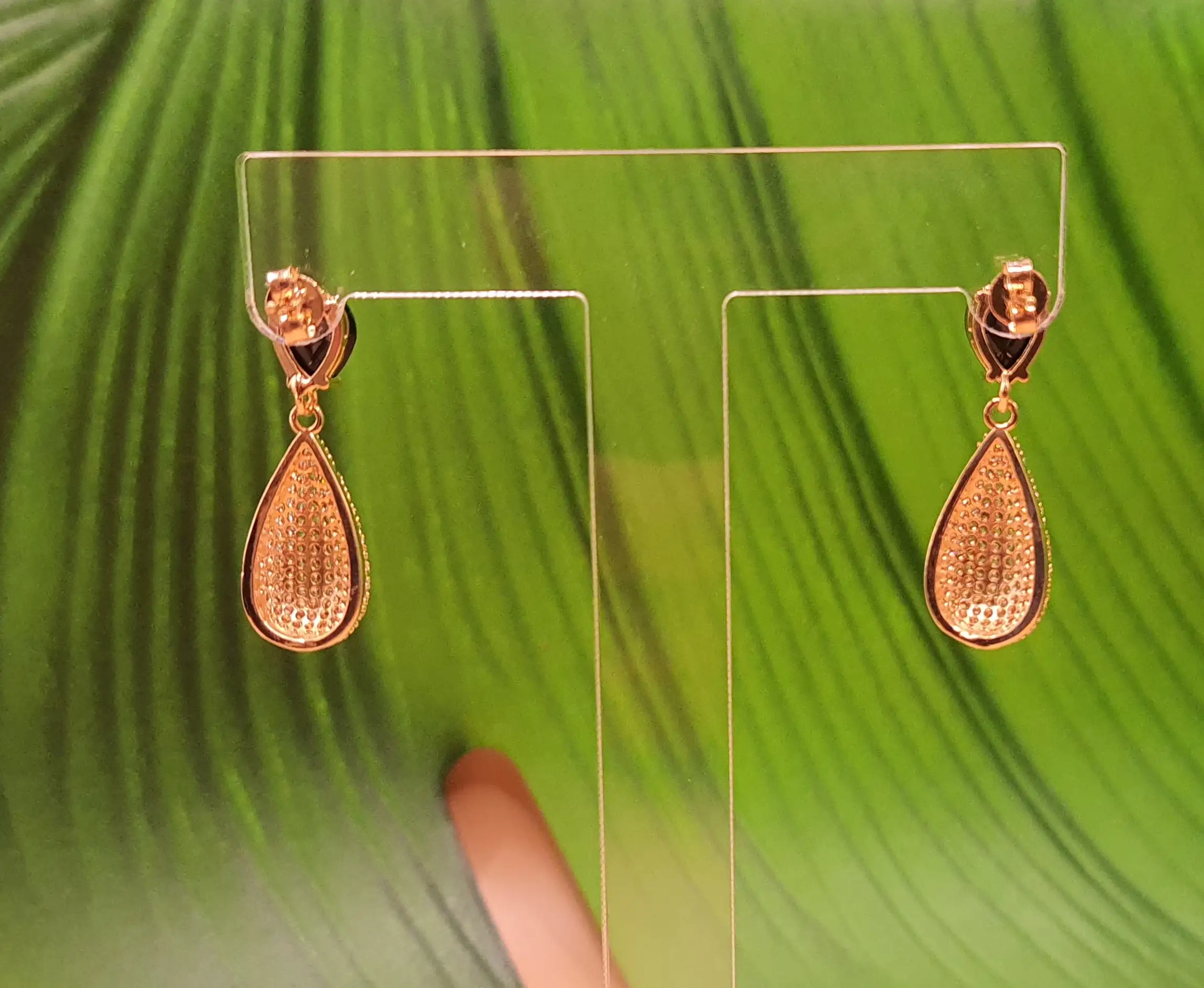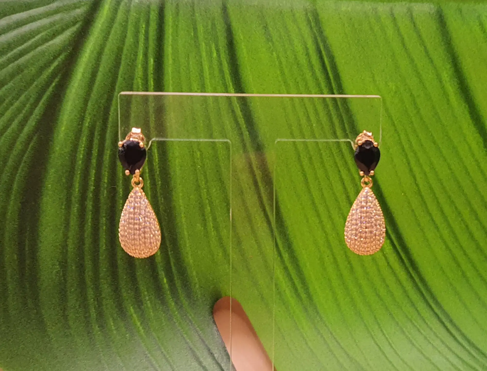 Brinco folheado a ouro gota negra e cravejada zircônia