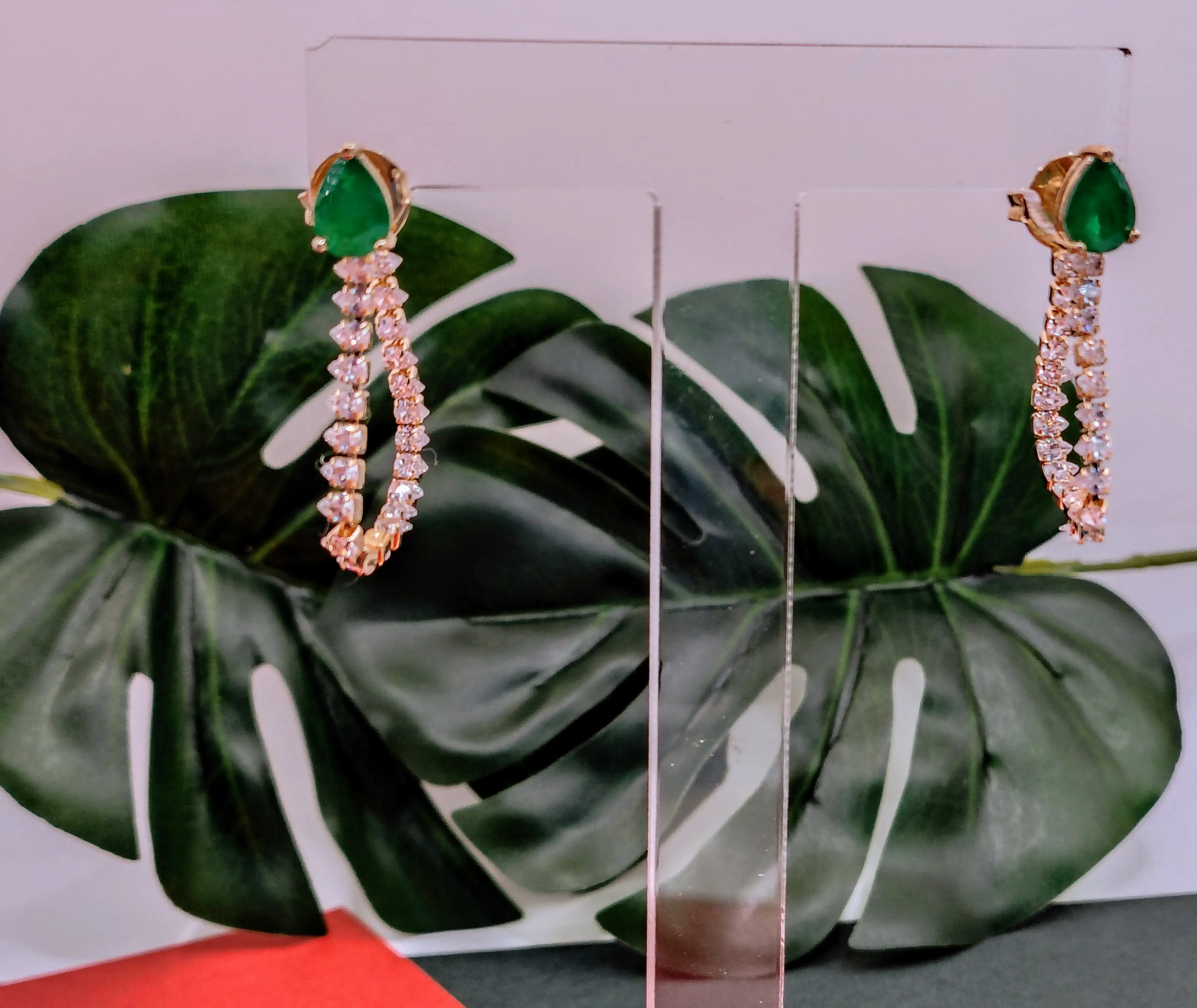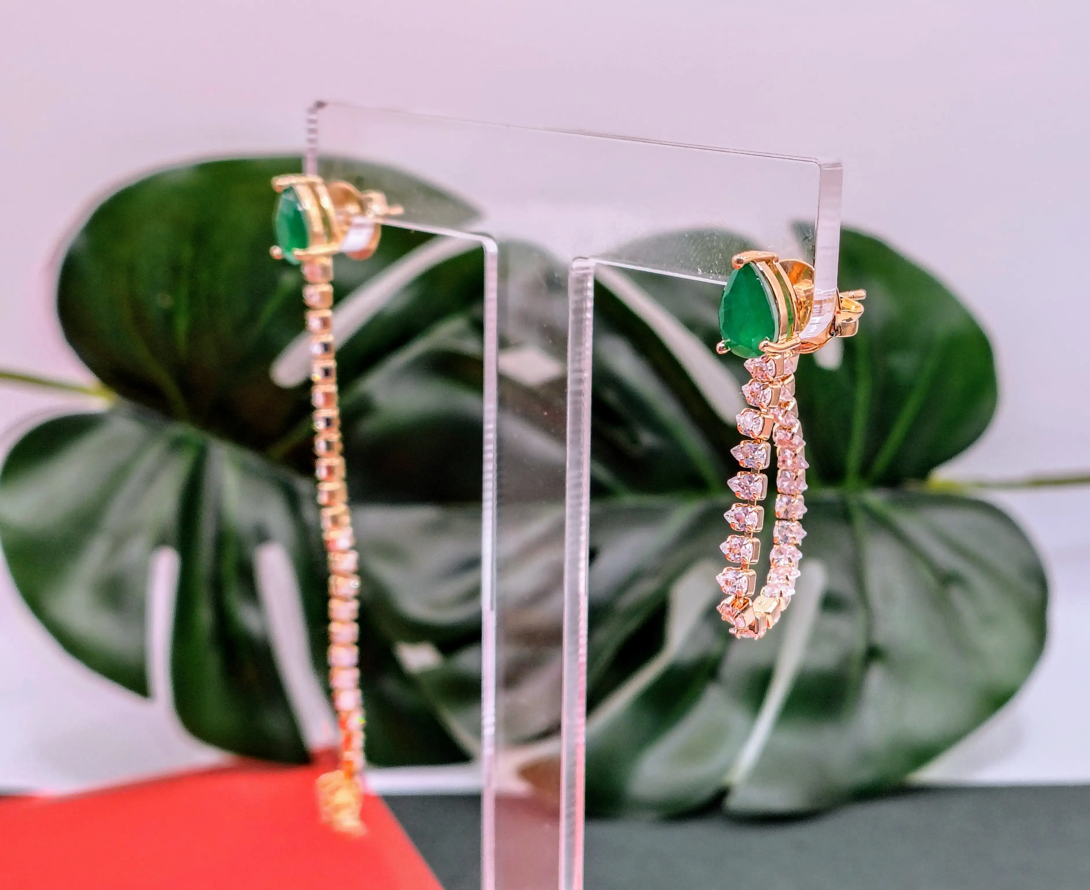 Brinco folheado a ouro gota zircônia esmeralda com Riviera