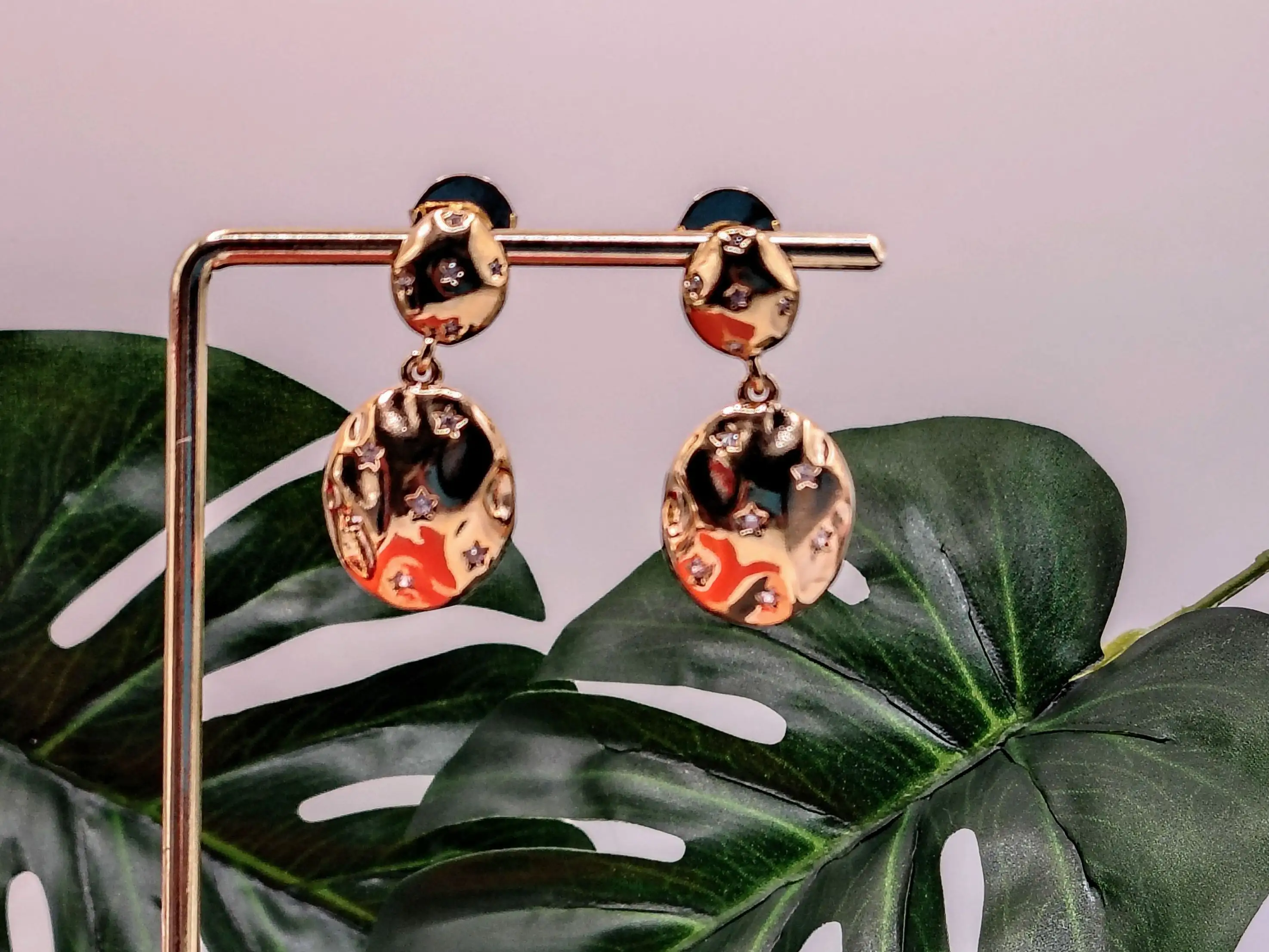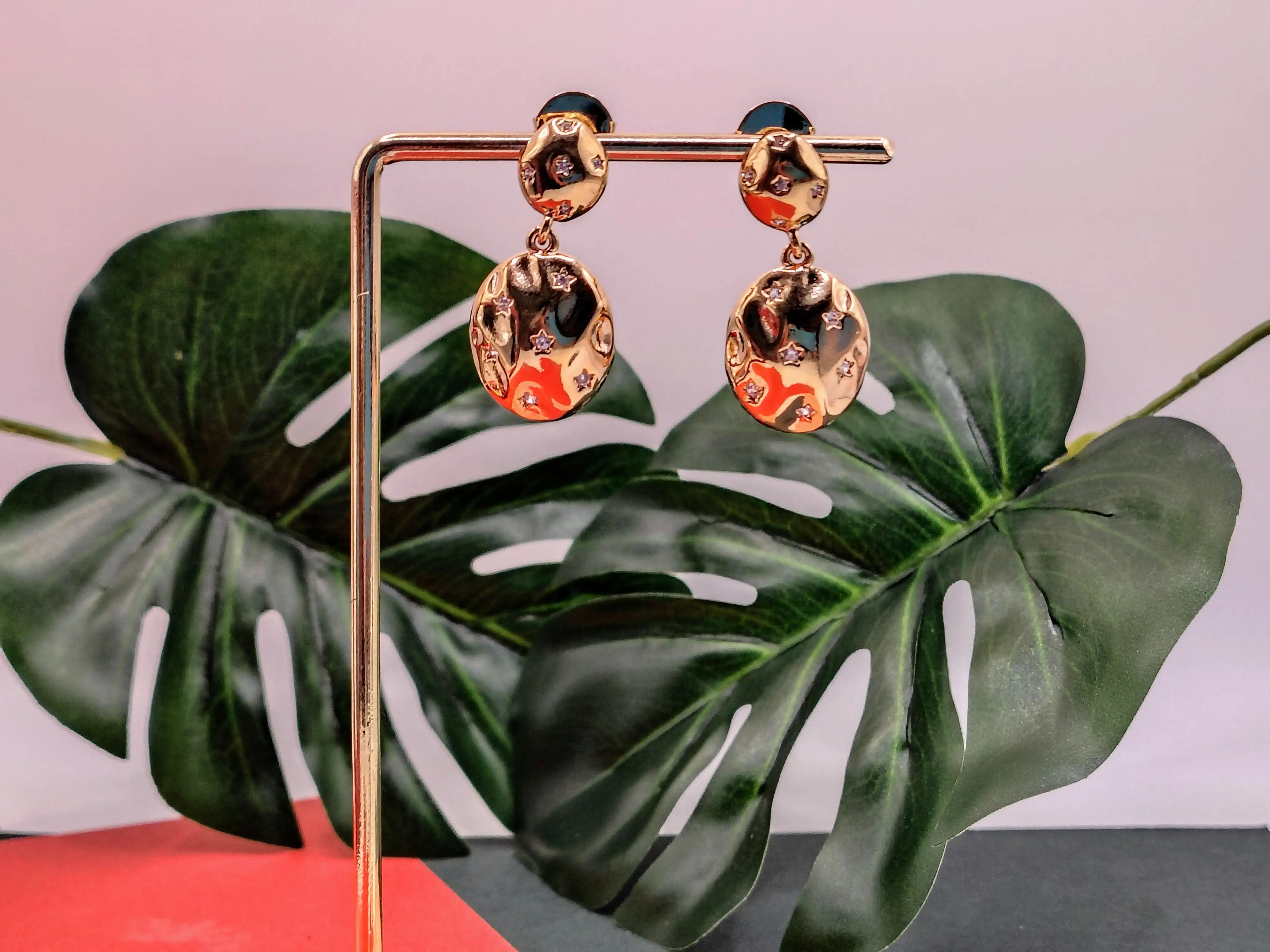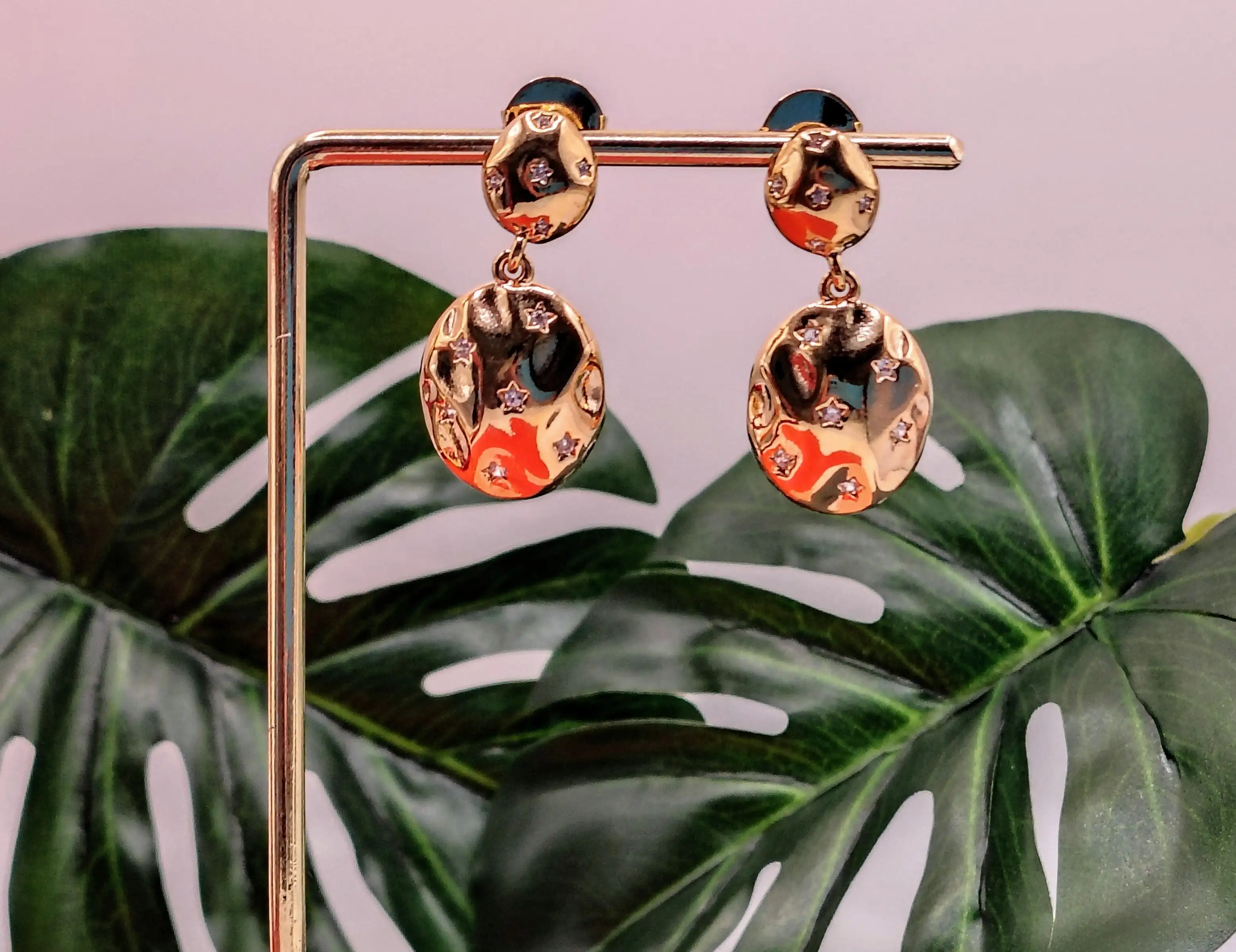 Brinco folheado a ouro orgânico cravejado zircônia