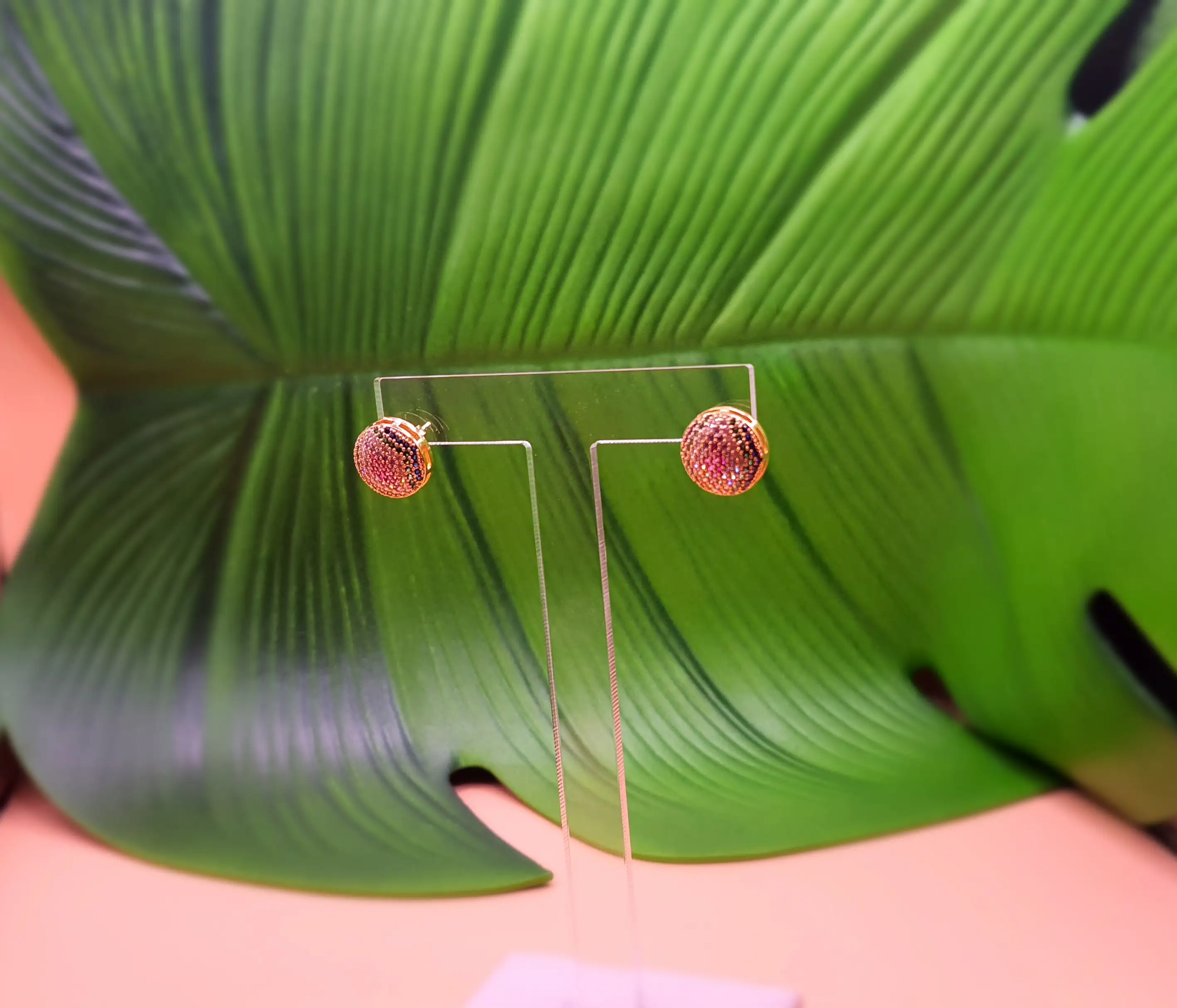 Brinco folheado a ouro redondo cravejado zircônia colorida