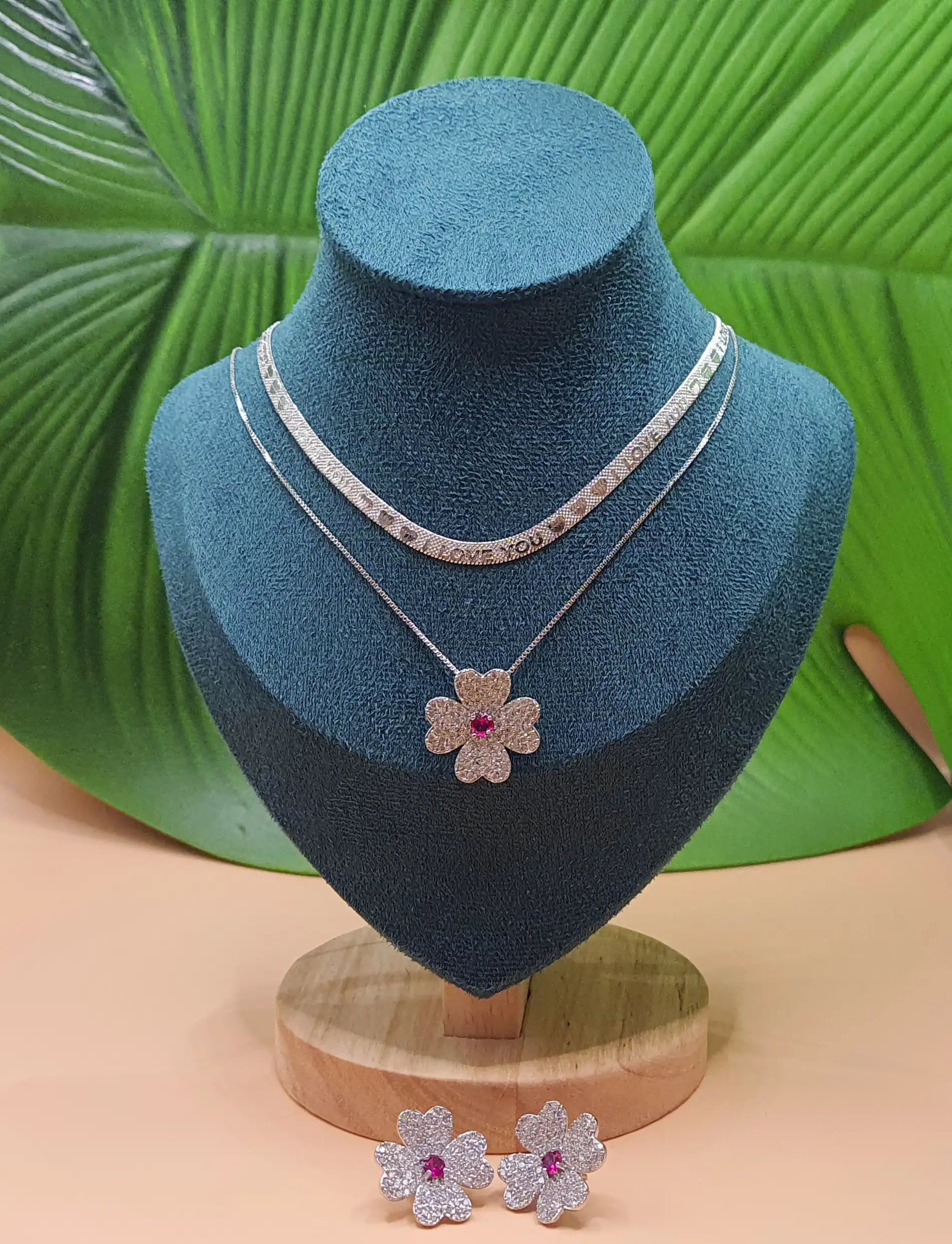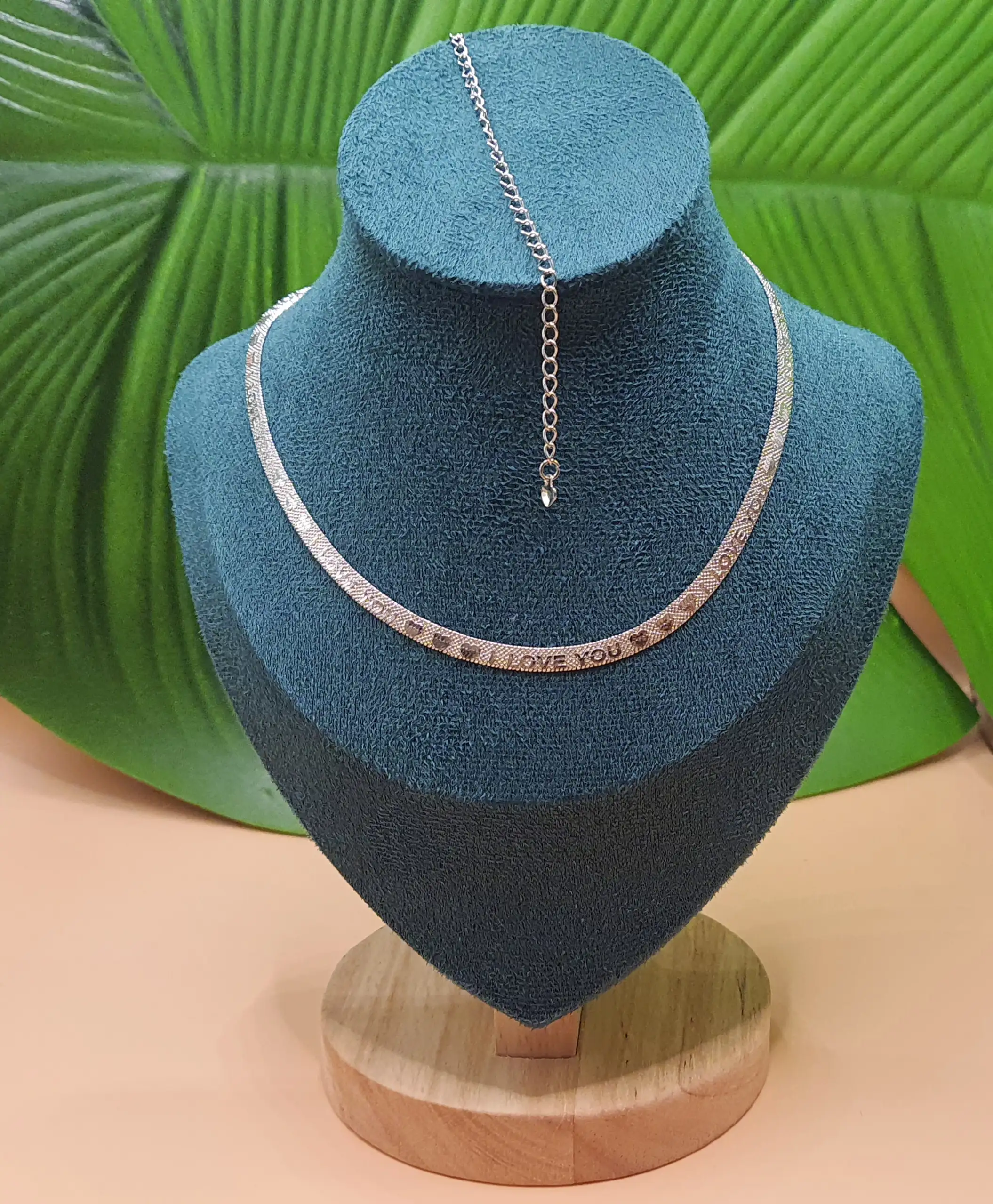 Choker ródio branco corrente fita 30 cm + 12 cm extensão I Love You