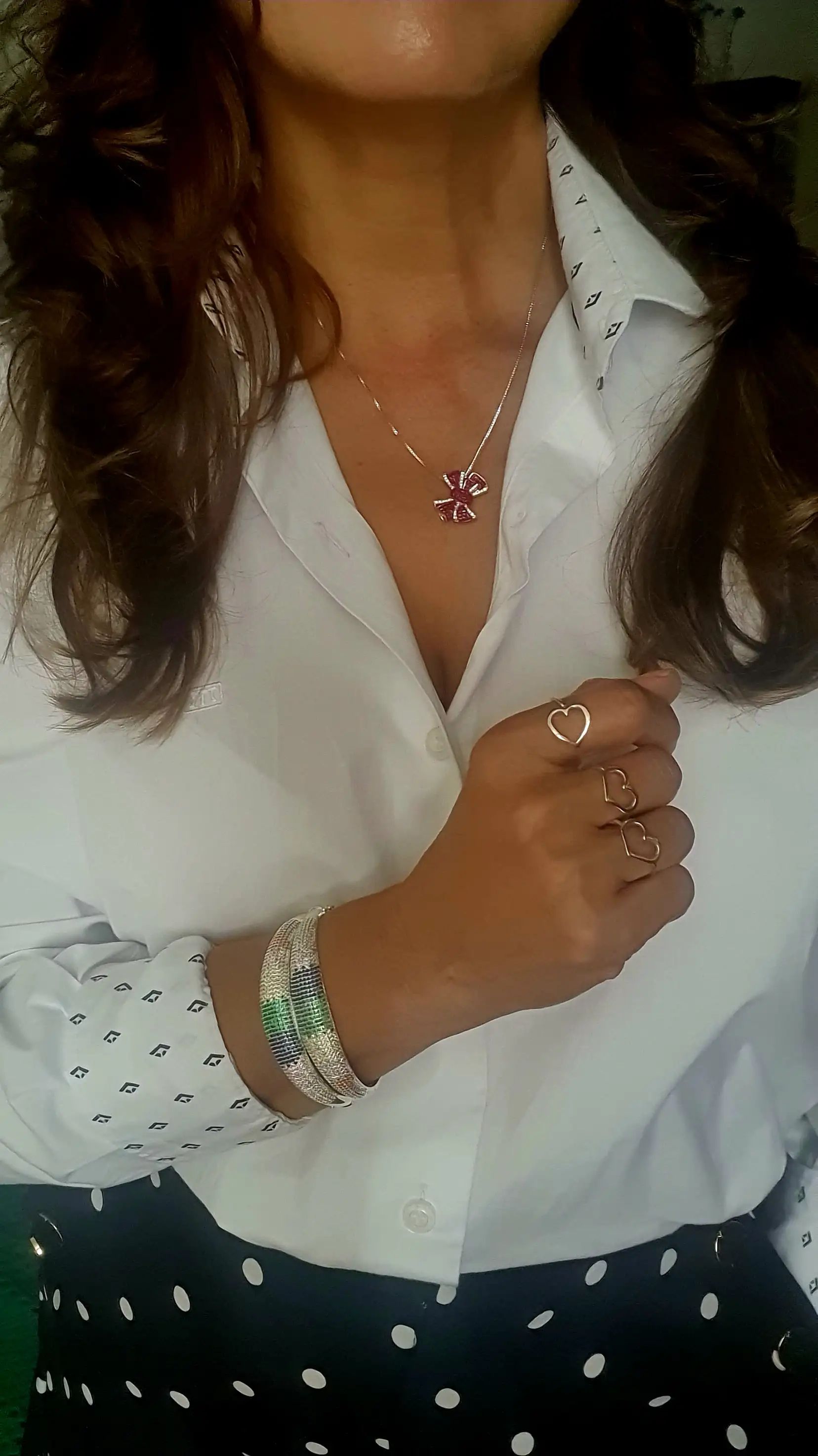 Colar corrente veneziana ródio branco com pingente laço cravejado