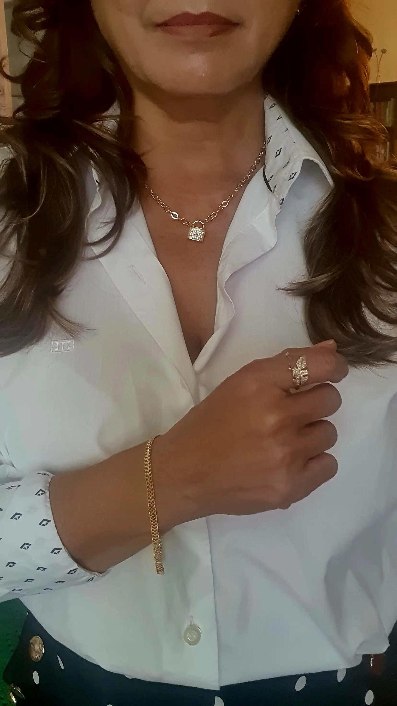 Colar folheado a ouro corrente belcher 40 cm + 5 cm com pingente cadeado cravejado zircônia