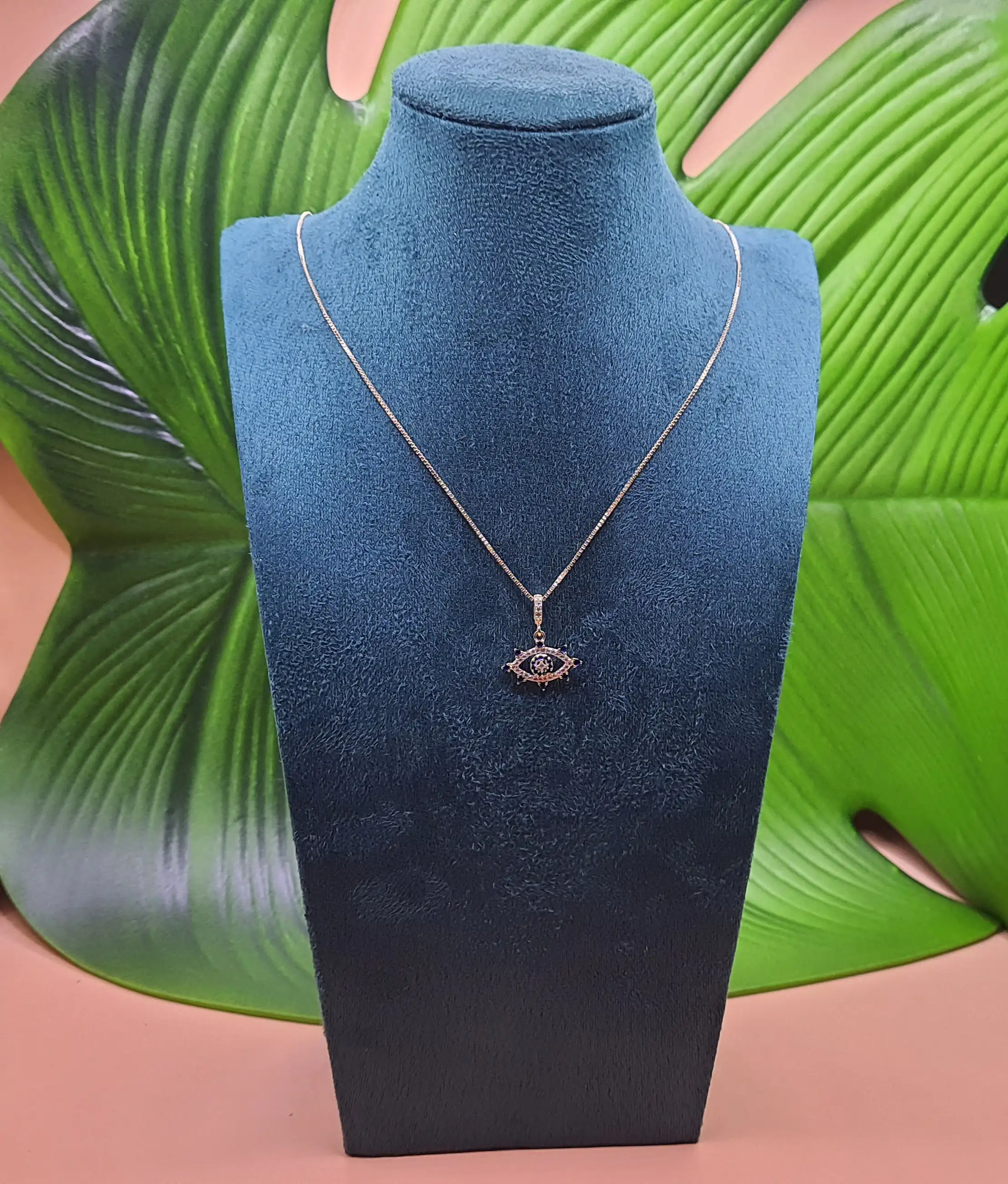 Colar folheado a ouro corrente veneziana 45 cm + 4 cm com pingente olho grego cravejado zircônia