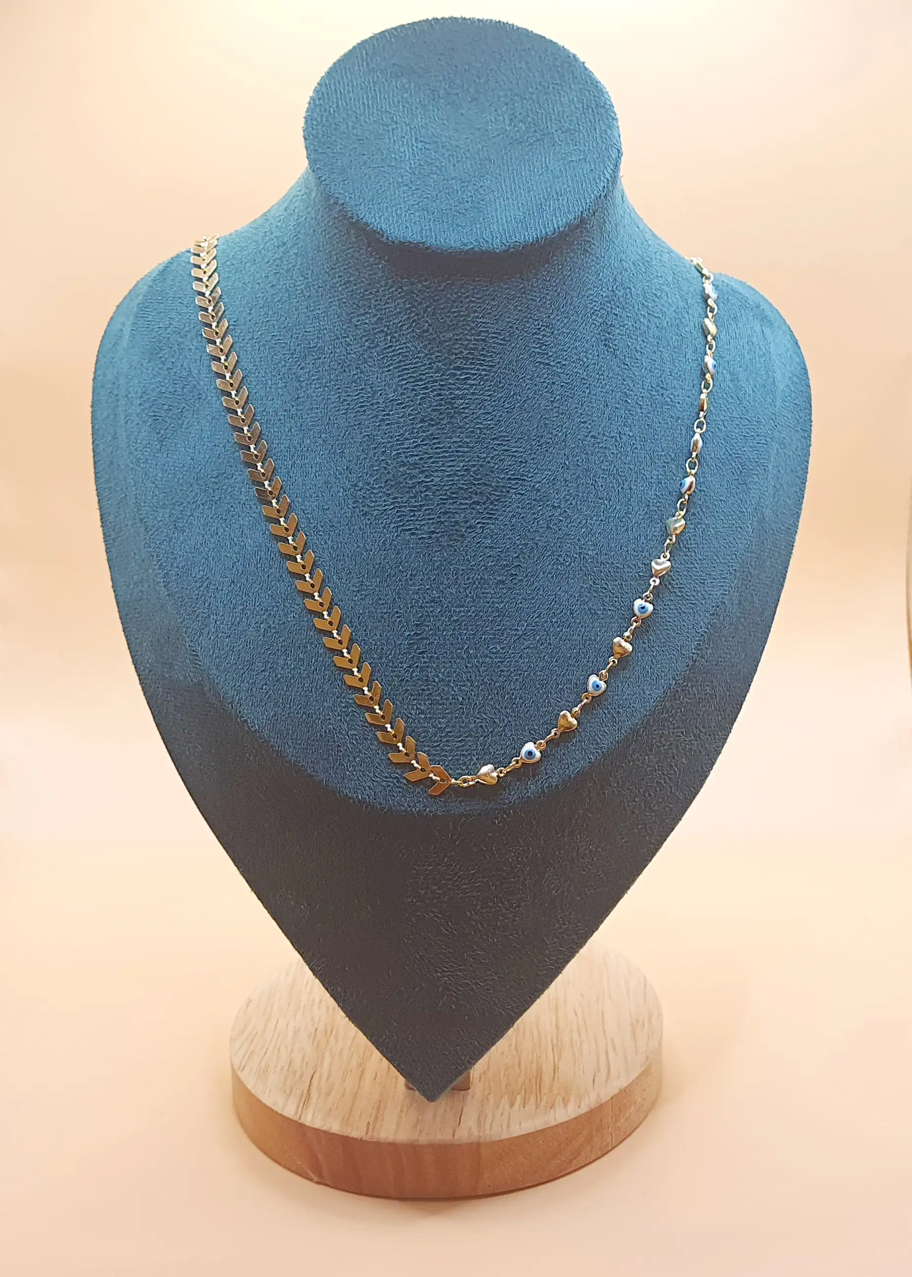 Colar folheado a ouro metade escama de peixe , metade olho grego