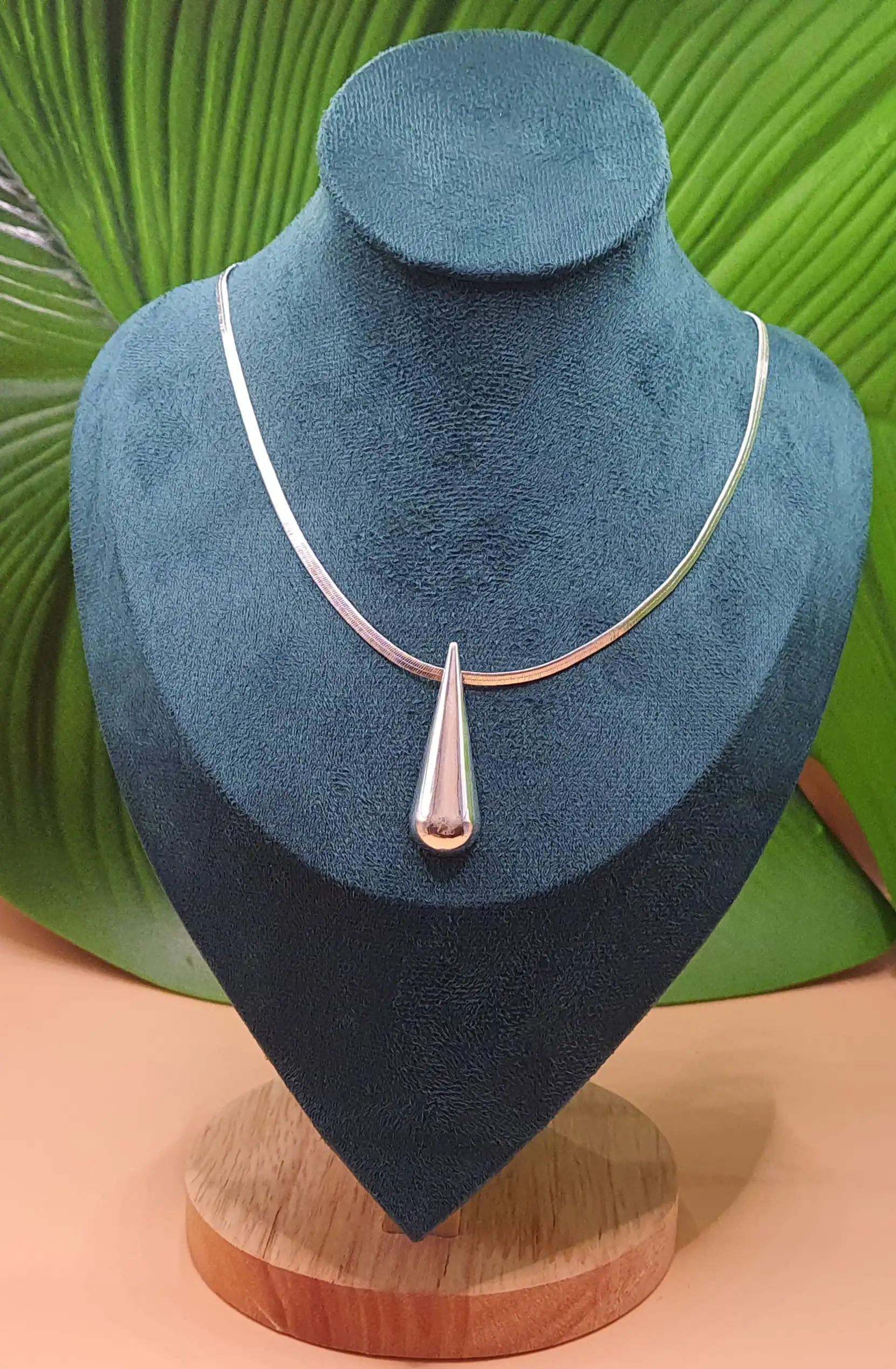 Colar prata corrente fita 35 cm + 5 cm com pingente gota