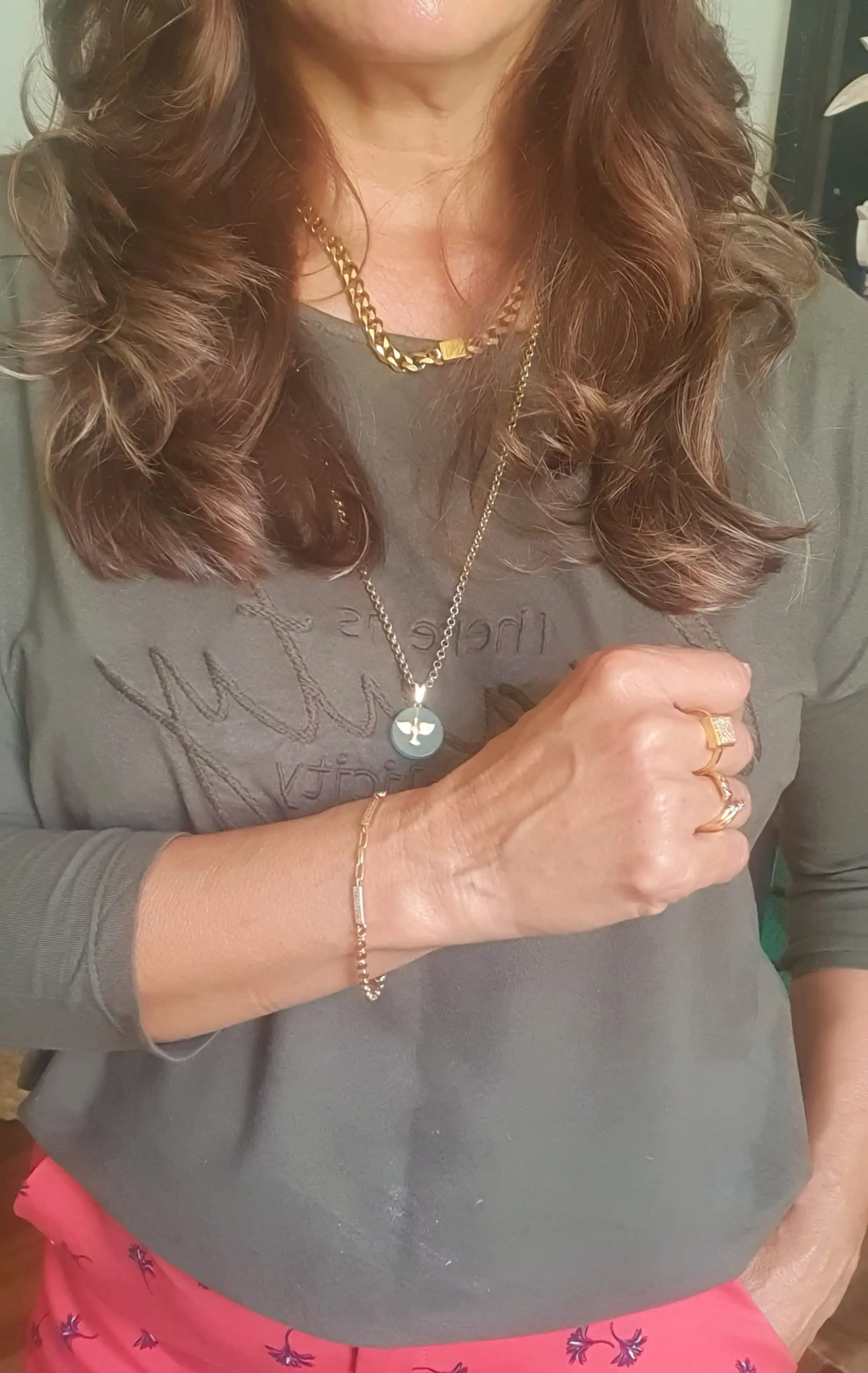 Pulseira folheado a ouro corrente elo português com pingentes cravejados