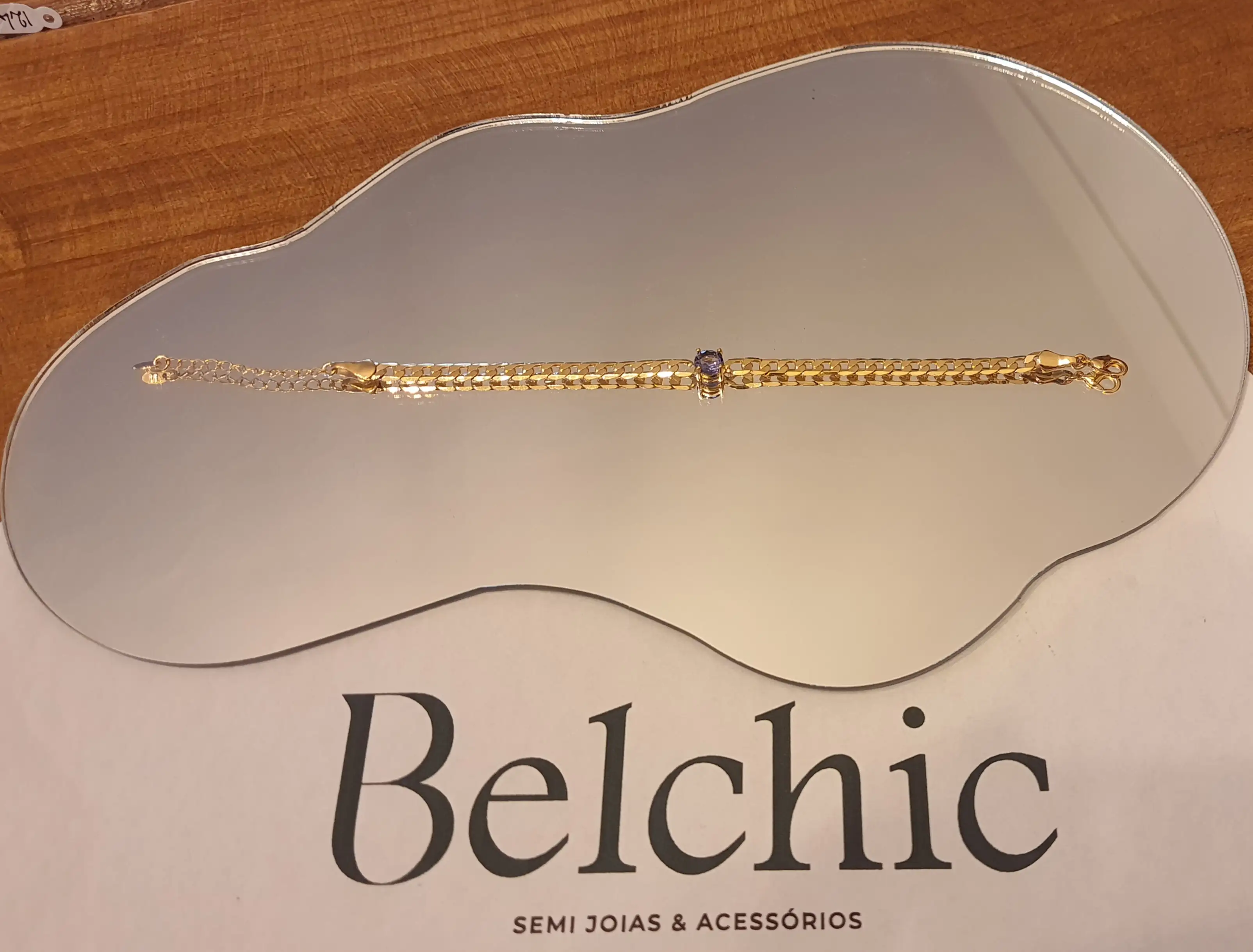 Pulseira folheado a ouro corrente groumet com pingente zircônia lilás
