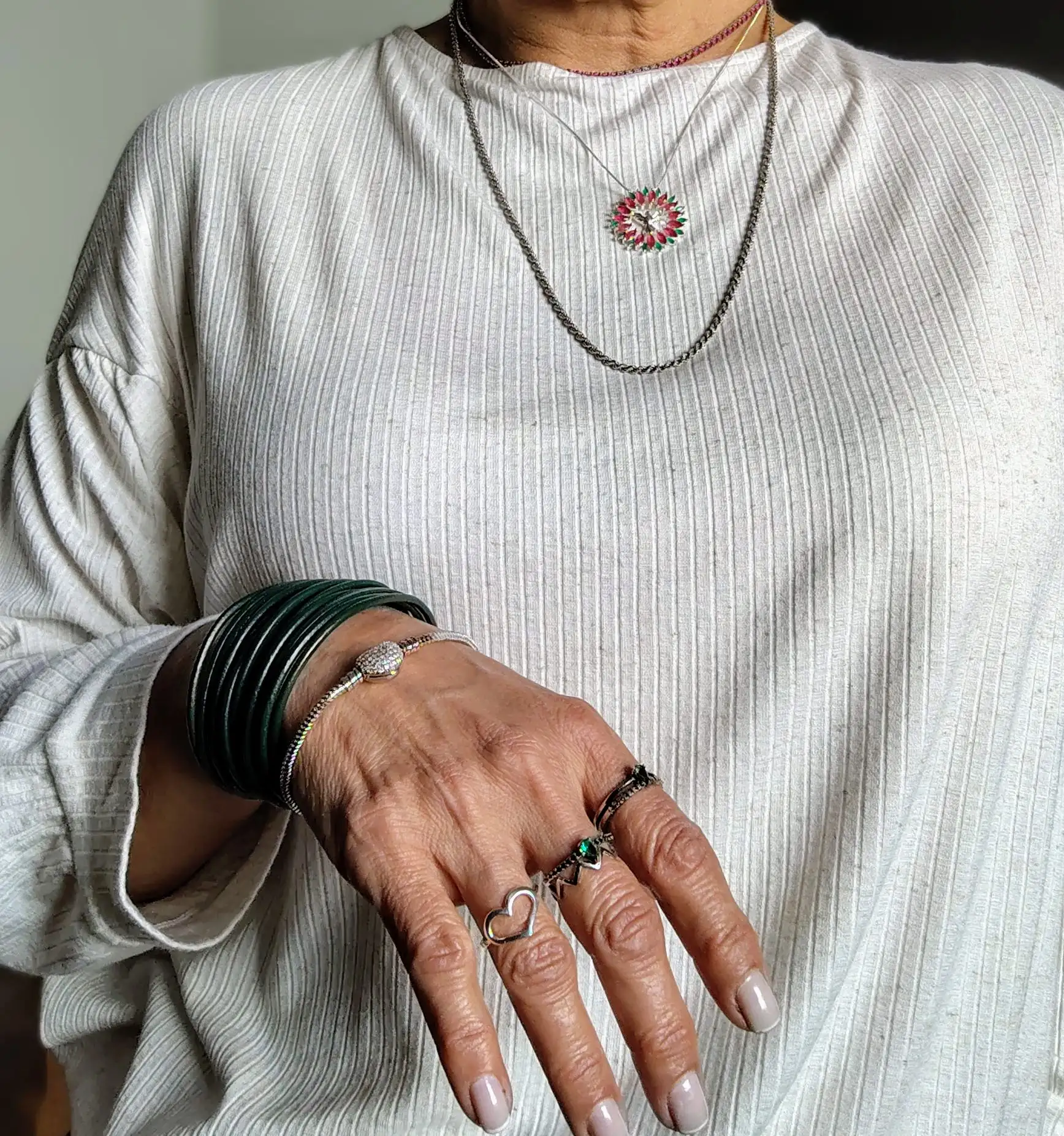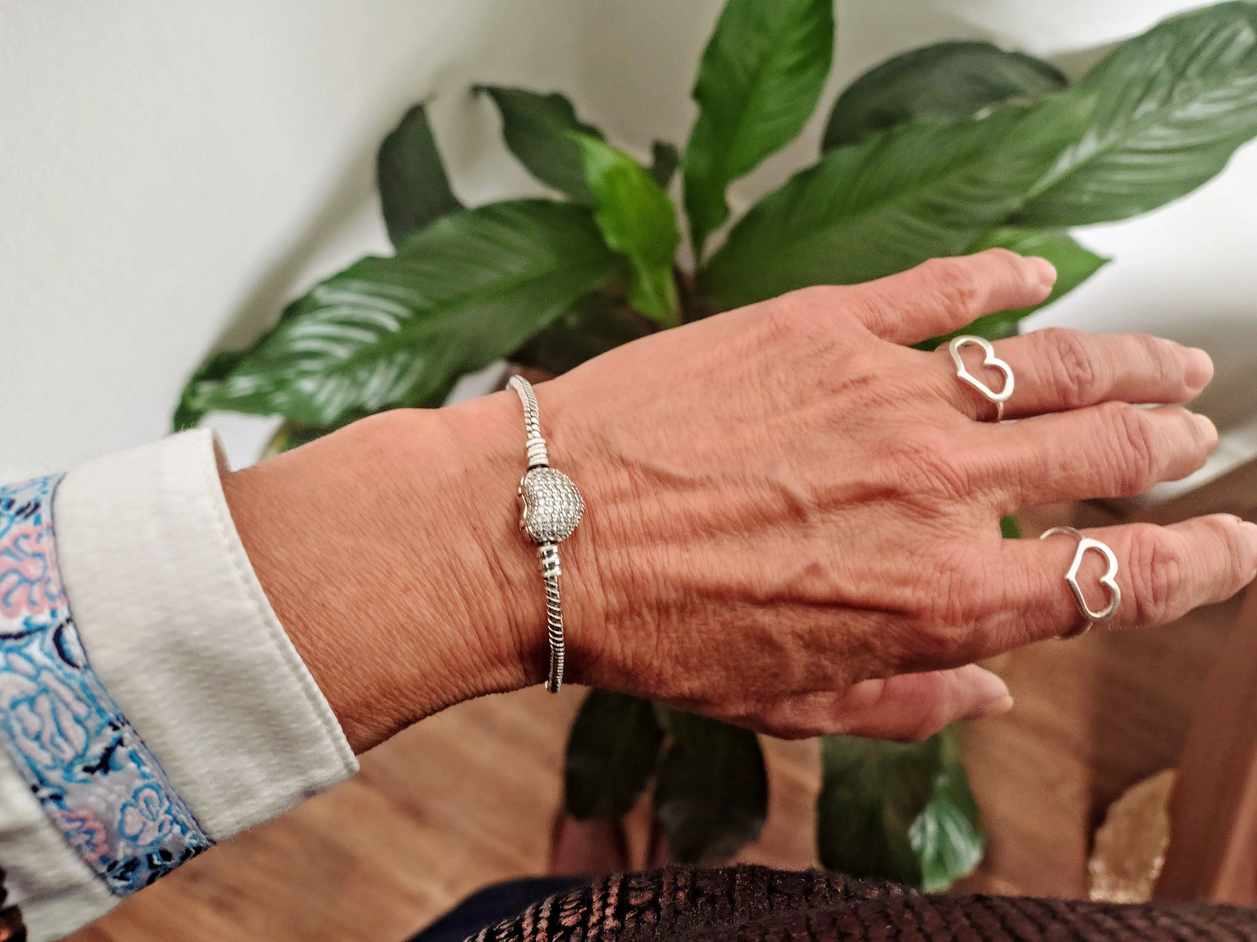 Pulseira ródio branco corrente rabo rato com pingente coração cravejado