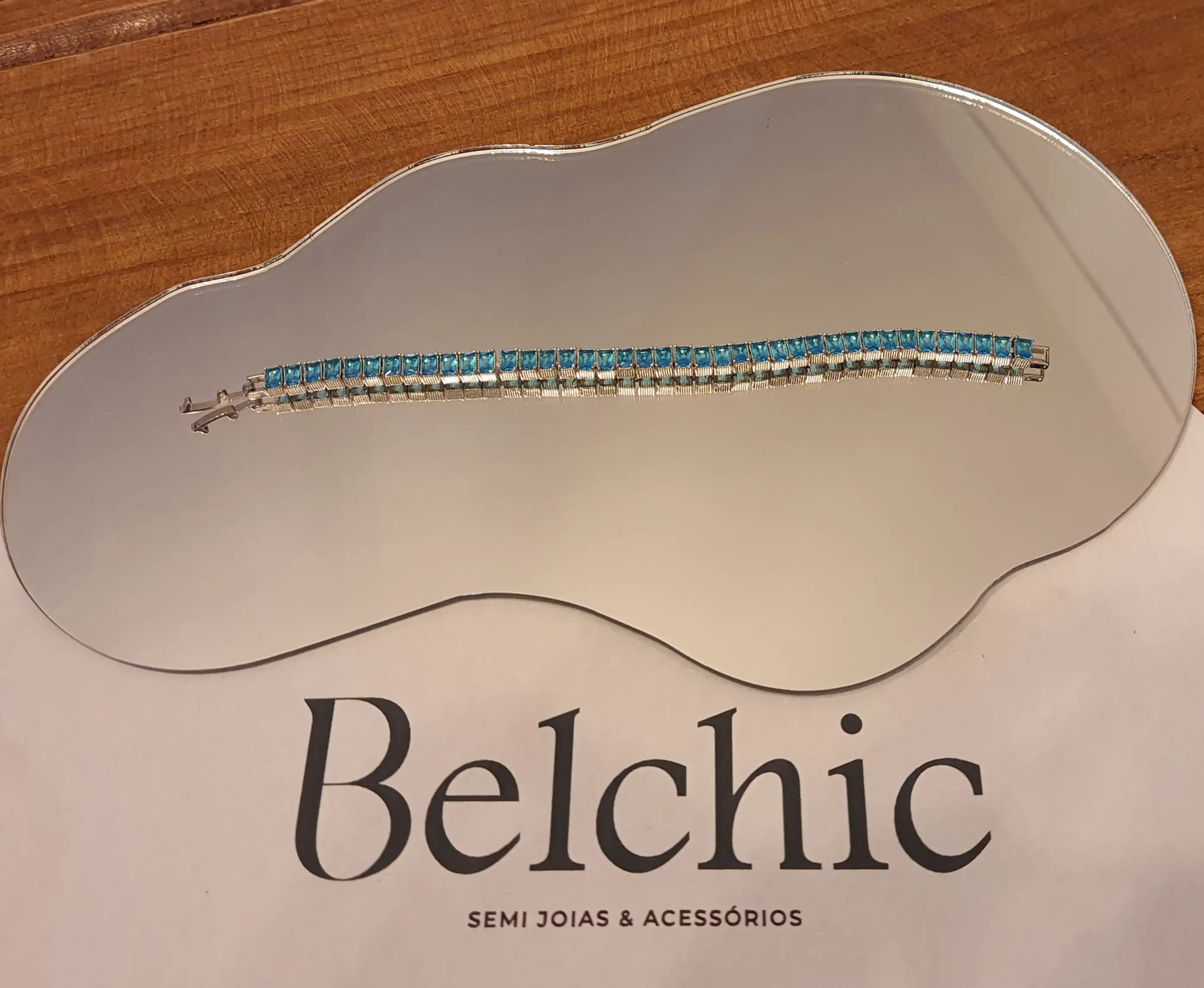 Pulseira ródio branco Riviera tijolinho azul 17 cm